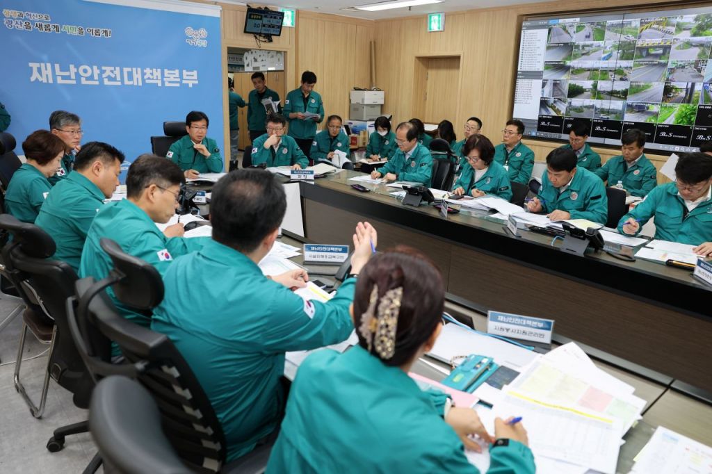 광주 광산구 재난안전대책본부가 금호타이어 화재 대응 관련 회의를 열고 대책을 논의하고 있다. 광산구 제공