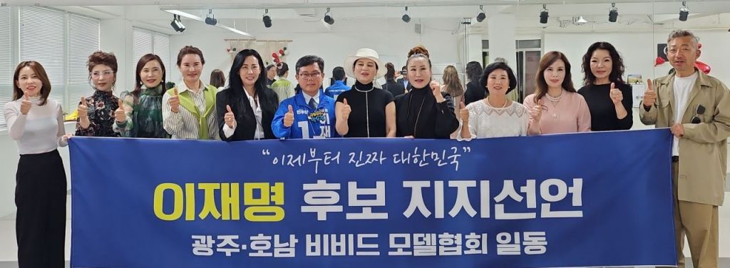 광주·호남 비비드모델협회 회원들이 지난 19일 제21대 대통령 선거에 출마한 더불어민주당 이재명 후보에 대한 지지 선언을 발표했다.