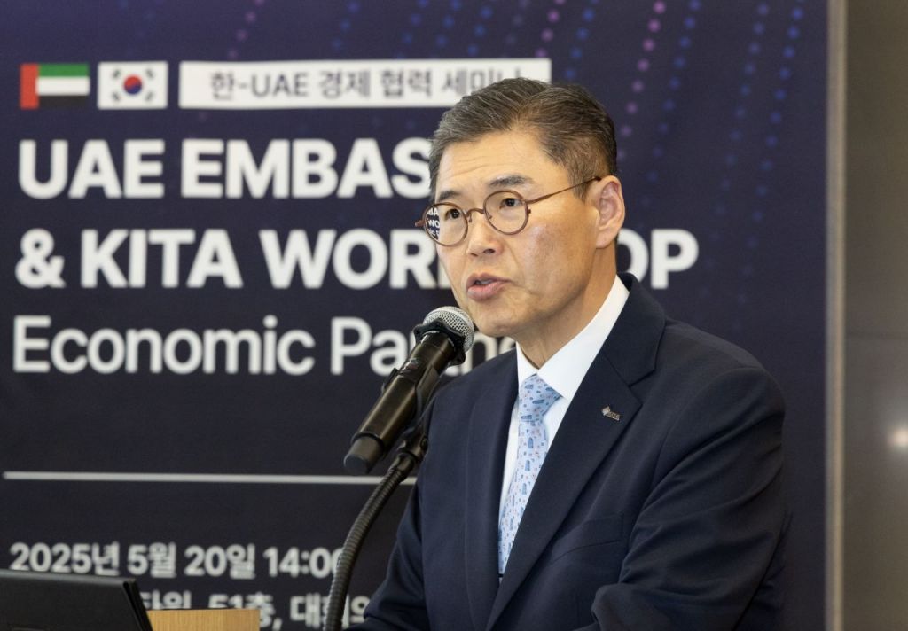 한국무역협회가 20일 서울시 강남구 삼성동 트레이드타워에서 개최한 '한-UAE 경제협력 세미나'에서 김기현 한국무역협회 국제협력본부장이 인사말을 하고 있다. 사진=무협 제공