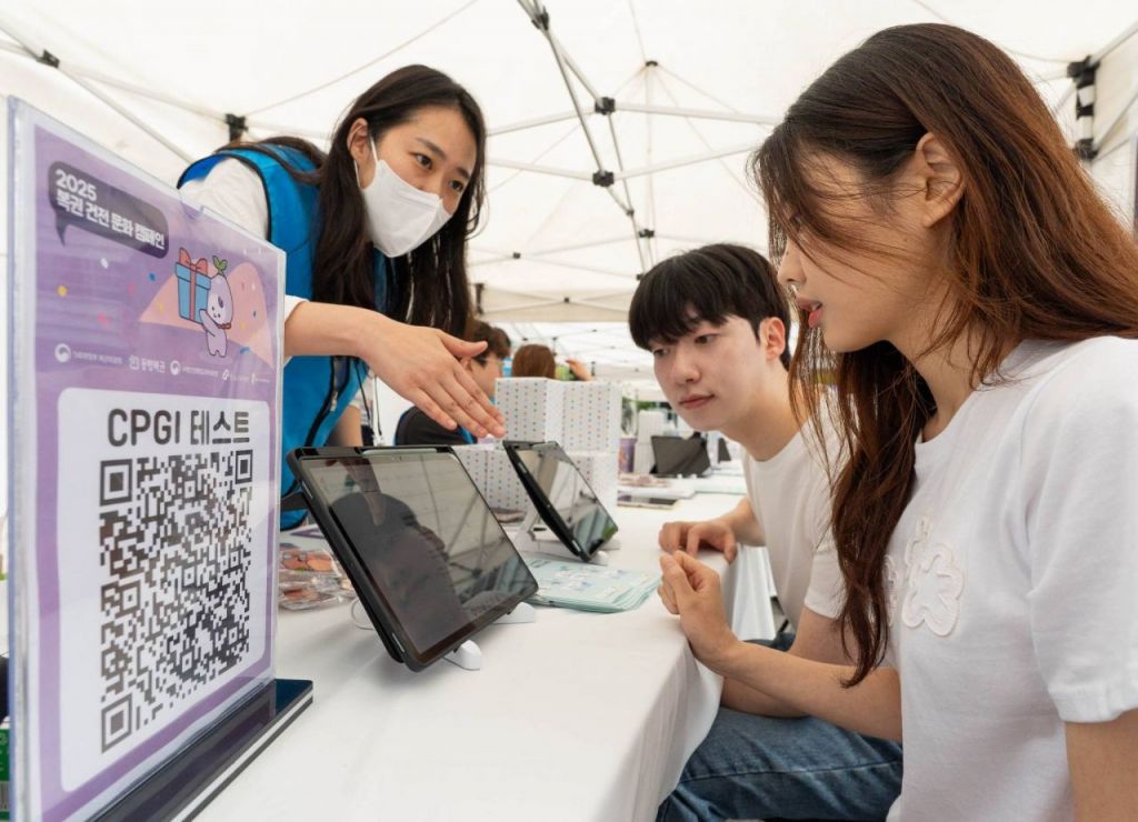 20일 서울 종로구 광화문 청계광장에서 기획재정부 복권위원회와 동행복권이개최한'2025복권 건전문화 홍보캠페인‘에 참여한 시민들이 도박문제 자가진단(CPGI) 테스트에 참여하고 있다. 동행복권