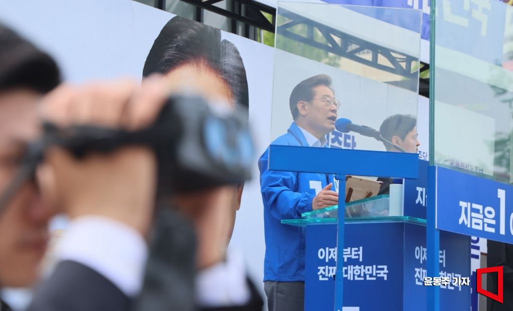 이재명 더불어민주당 대선 후보가 20일 경기 고양시 일산문화광장에서 열린 집중 유세 현장에서 지지를 호소하고 있다. 2025.05.20 윤동주 기자