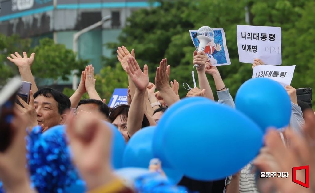 20일 경기 고양시 일산문화광장에서 열린 이재명 더불어민주당 대선 후보 집중 유세 현장에서 지지자들이 환호하고 있다. 2025.05.20 윤동주 기자