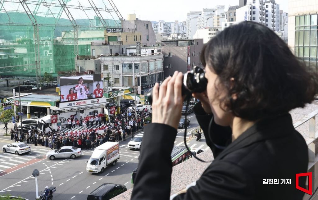 [포토] 김문수 유세 현장 경계 근무하는 경찰