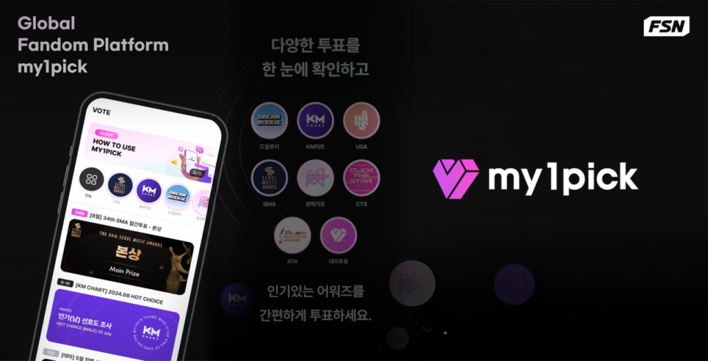 마이원픽은 두허브가 운영하는 글로벌 팬덤 플랫폼으로 전세계 200개국의 글로벌 유저들이 사용하고 있다. K-POP을 시작으로 K-드라마 장르까지 서비스 영역을 확장하는 데 성공하며, K-콘텐츠의 팬덤 문화 활성화에 기여하고 있다. 특히 다양한 투표 시스템을 구축하여 팬덤의 참여도를 높이고, 글로벌 시장에서 K-콘텐츠의 영향력을 확대할 수 있도록 지원하고 있다.