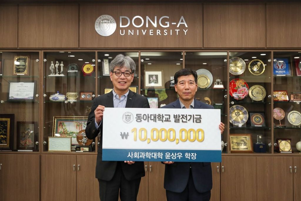 동아대학교 윤상우 사회과학대학장이 대학 발전기금 1000만원을 기부하며 학교 사랑을 실천했다.