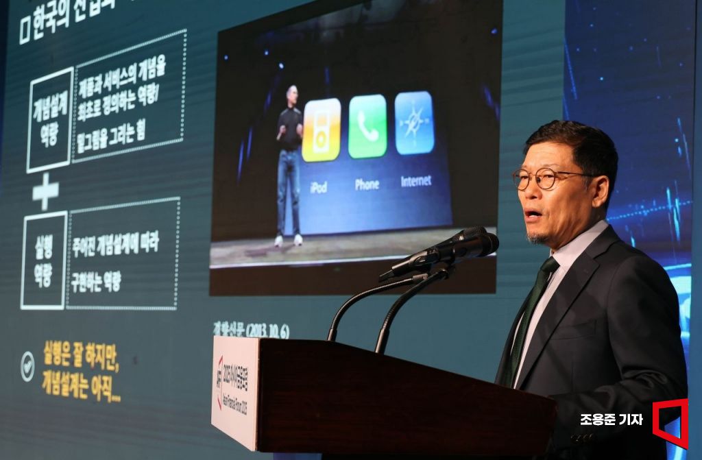 이정동 서울대학교 공과대학 교수가 21일 서울 중구 웨스턴조선호텔에서 열린 '2025 아시아금융포럼(Asisn Financial Forum 2025)'에 참석, '기술선진국과 금융의 역활'이란 주제로 강연하고 있다.