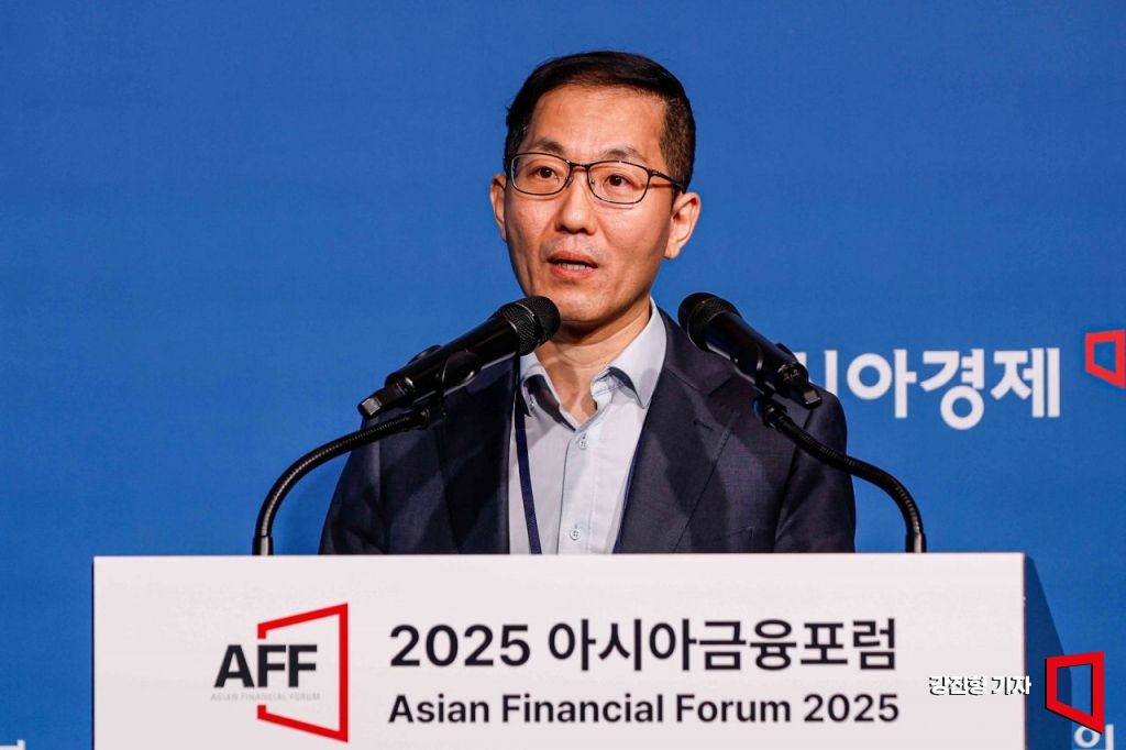 이동기 딜로이트컨설팅코리아 파트너가 21일 서울 중구 조선호텔에서 아시아경제 주최로 열린 '2025 아시아금융포럼'에 참석해 ‘트럼프 2.0 시대, 가상자산 글로벌 동향 및 가상자산 기반 사업화 제언’이란 주제로 특별강연 하고 있다.