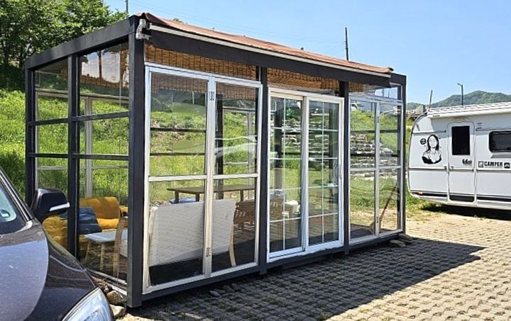 시 확인 결과 철제 프레임에 투명한 소재로 만들어진 가로 6m, 세로 2.5m, 높이 3m 규모의 이 건축물 내부에는 음식을 먹을 수 있는 의자와 테이블 등이 갖춰져 있었다.