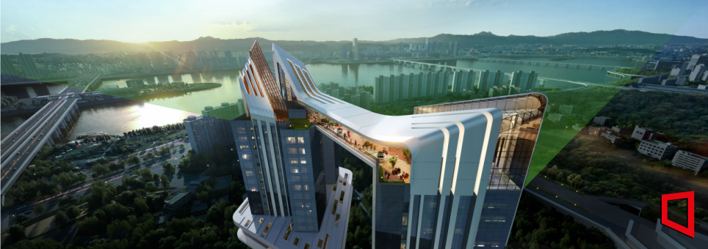 HDC현산이 제안한 전면1구역 스카이브릿지 조감도. HDC현산 제공