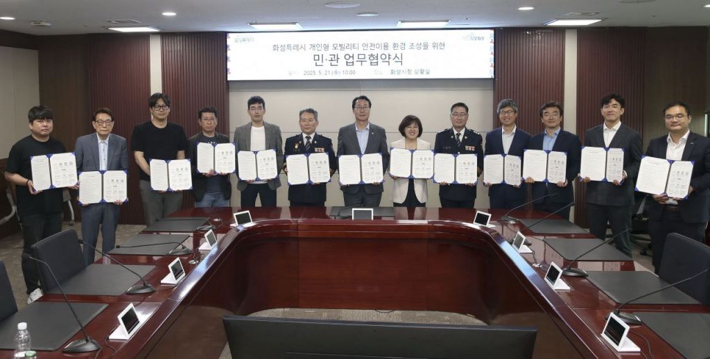 경기도 화성시가 전동킥보드, 전기자전거 등 개인형 이동장치(PM)의 안전한 이용환경 조성을 위해 13개 민간기관과 손을 맞잡았다.