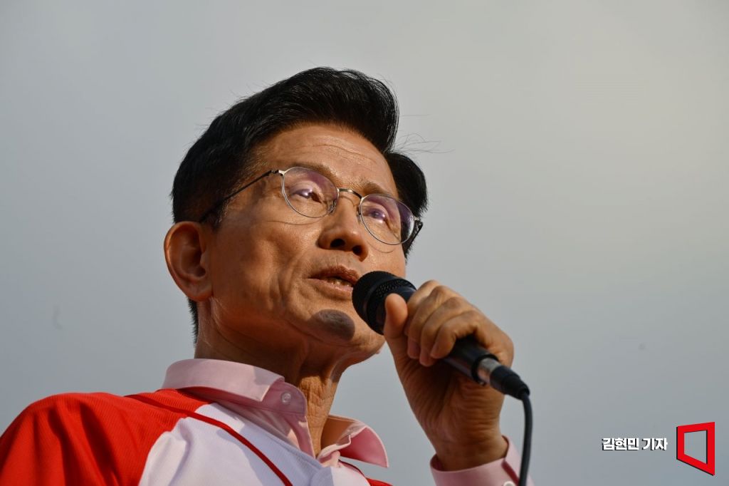 김문수 국민의힘 대선후보가 20일 경기 하남시 스타필드 앞에서 시민들을 향해 지지를 호소하고 있다. 김현민 기자