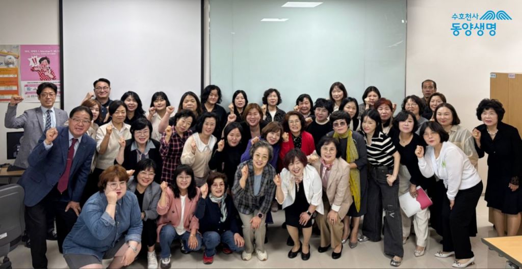 동양생명의 보람지점 설계사들이 함께 사진을 찍고 있다. 동양생명