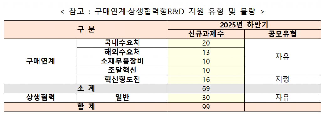 중소벤처기업부는 중소벤처기업의 기술사업화를 촉진하기 위해 '2025년 구매연계·상생협력형 R&D' 신규 과제 모집을 공고한다고 22일 밝혔다.