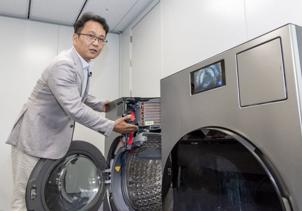 이날 브리핑에서는 올해 출시한 제품에 대한 기술 설명이 이뤄졌다. 성 상무는 "건조 성능을 높이기 위해 열교환기 크기는 유지하면서 열교환기의 핀을 기존 대비 더 많이 촘촘하게 배치해 전열면적을 8.5% 확대했다"며 "전열면적이 넓어지면 세탁물을 통과한 고온다습한 공기의 수분을 더 빠르게 제거할 수 있다"고 설명했다.