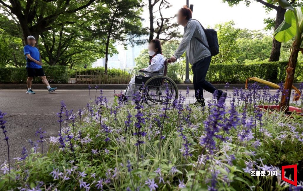 2025 서울국제정원박람회가 개막한 22일 서울 동작구 보라매공원에서 산책 나온 환자가 정원을 둘러보고 있다. 오는 10월 20일까지 열리는 이번 박람회는 자연과 도시가 조화를 이루는 ‘서울, 그린 소울’을 주제로 진행된다.