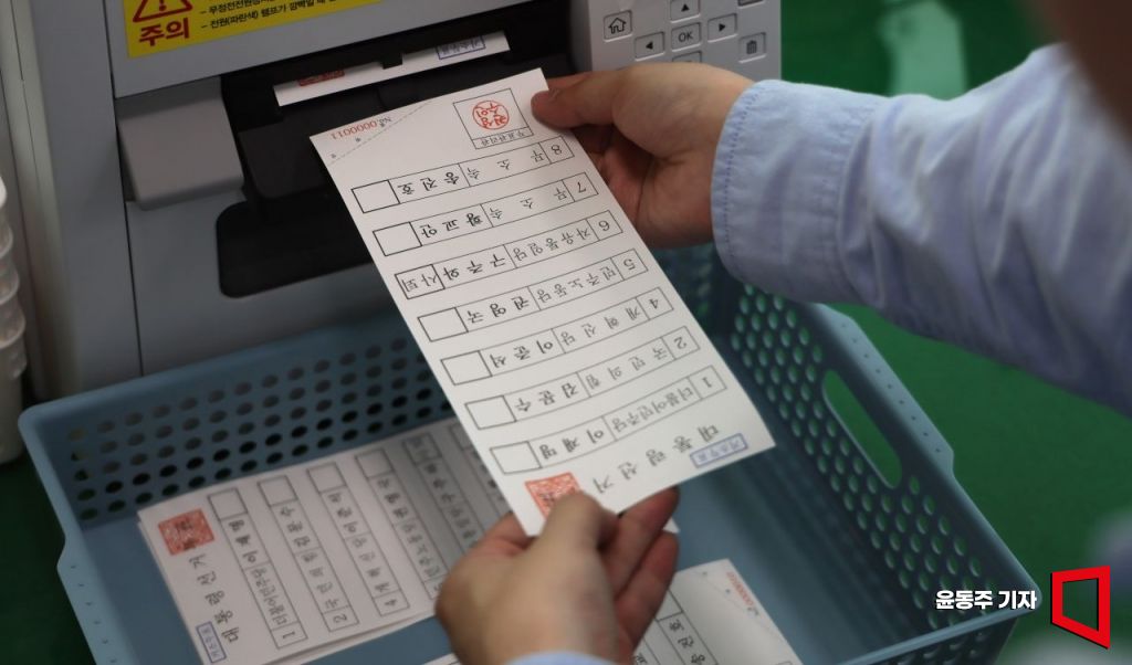21일 서울 양천구 양천구선관위에서 선관위 관계자들이 21대 대통령 선거 '거소투표용지'를 인쇄하고 있다. 거소투표는 함정에서 오랫동안 생활하는 군인 등 투표소와 멀리 떨어져 직접 투표가 곤란한 유권자들을 위한 투표 방법이다. 2025.05.21 윤동주 기자
