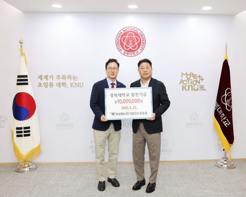 화성밸브 장성필 대표가 모교 발전을 위해 써달라며 발전기금 1000만원을 경북대에 전달했다.
