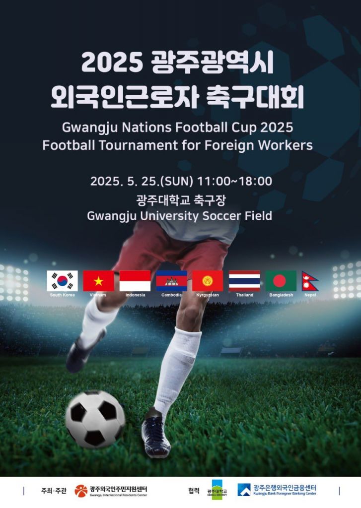 광주에서 거주하는 외국인 근로자들의 화합과 교류를 위한 '2025 광주시 외국인 근로자 축구대회'가 오는 25일 광주대 축구장에서 열린다.