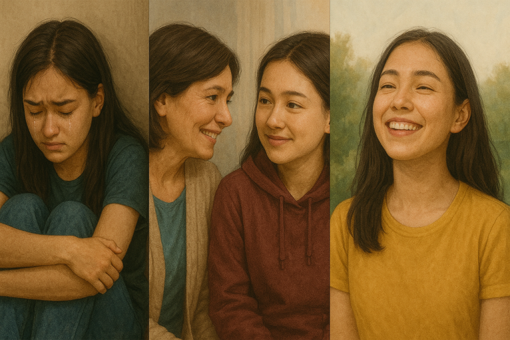 힘겨운 시절을 겪다 자신을 믿어주는 사람들을 만나 치유되는 과정을 인공지능(AI)로 생성. DALL-E3