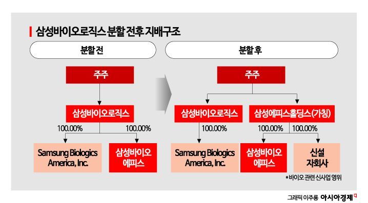 삼성에피스홀딩스는 그동안 삼성바이오로직스에서 자회사 관리와 신규 투자를 맡아 온 사업부문이 분할돼 설립된다. 순수 지주회사로 신설되는 삼성에피스홀딩스는 바이오시밀러 기업인 삼성바이오에피스를 완전 자회사로 편입한다. 또한 바이오 관련 신사업을 추진하는 '신설 자회사'도 설립돼 삼성에피스홀딩스가 100% 소유하게 된다. 초대 삼성에피스홀딩스 대표이사는 김경아 삼성바이오에피스 대표이사가 겸임할 예정이다. 삼성바이오로직스는 순수 CDMO 회사로 거듭난다.