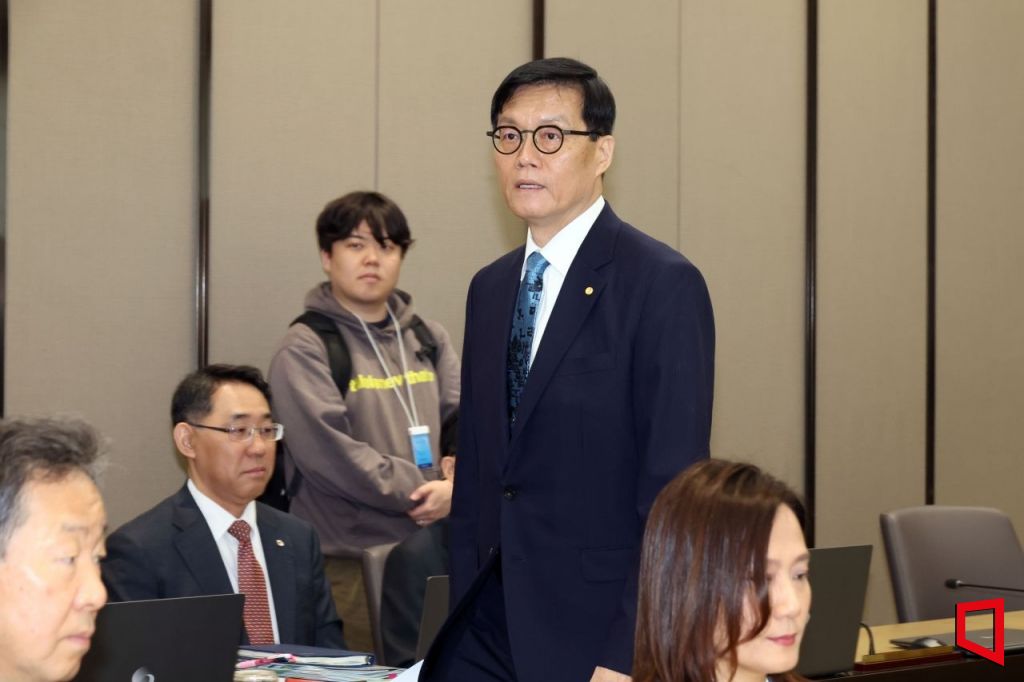 이창용 한국은행 총재가 17일 서울 중구 한국은행 본관에서 열린 금융통화위원회 본회의에 참석하고 있다. 25.04.17. 사진공동취재단