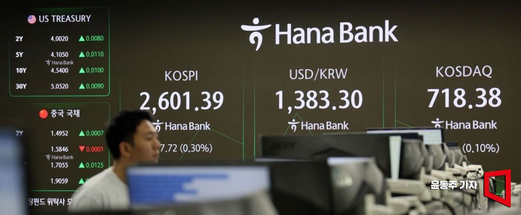 23일 코스피 지수가 2600 전후로 등락을 거듭하며 장을 시작하고 있다. 서울 중구 하나은행 딜링룸 현황판에 각종 지수가 표시되고 있다.