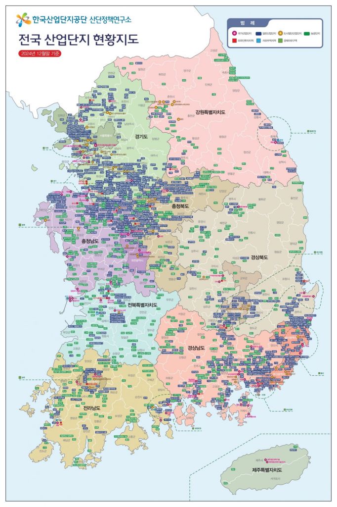 한국산업단지공단은 전국 산업단지의 위치정보를 현행화해 시각적으로 담은 '2025년 전국산업단지 현황 지도'를 발간했다고 23일 밝혔다.
