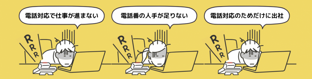 전화대응업체 '폰데스크'의 홍보 그래픽. '전화 받느라 일을 못하겠다', '전화 대응할 사람이 모자란다', '전화 받으려고 출근하는 것 같다'라고 푸념하는 모습이다. 폰데스크.