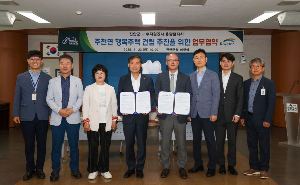 전북 진안군(군수 전춘성)과 한국수자원공사 용담댐지사(지사장 강희완)가 23일 진안군청 상황실에서 주천면 행복주택 건립 추진을 위해 손을 맞잡았다.