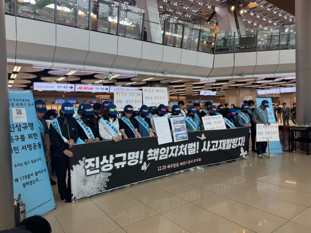 이들은 "둔덕 추락, 기체 결함, 항공사 과실, 공항 운영 문제 등이 복합적으로 얽힌 참사다"며 "진실을 밝히고 책임 있게 유가족을 지원하겠다는 김이배 제주항공 사장의 약속이 지켜져야 한다"고 강조했다.