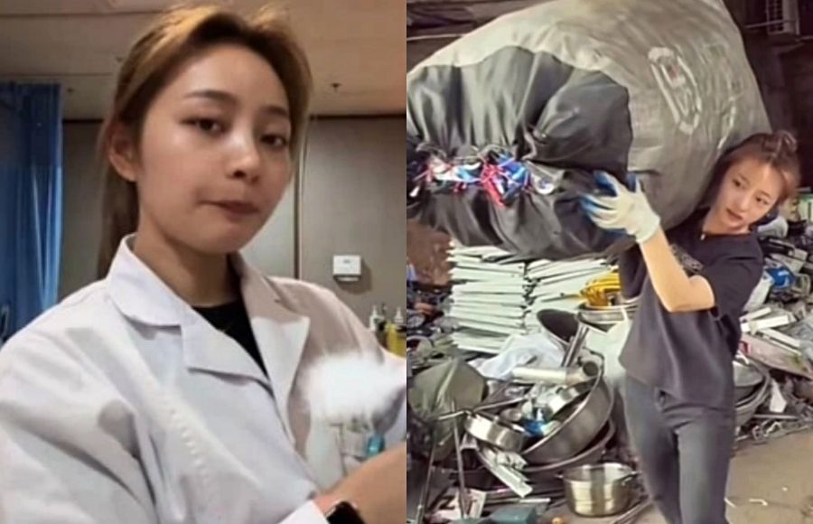 낮에는 병원에서 의사로 근무하고 밤에는 쓰레기를 주우며 이중생활 중인 중국 여성 웅씨(26). VGT뉴스
