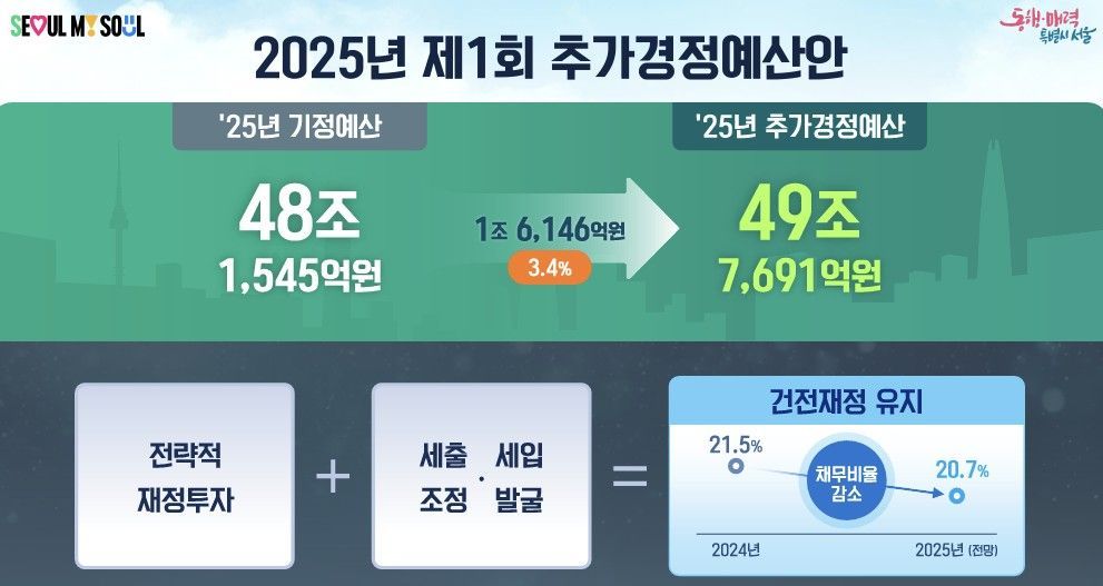25일 서울시는 이같은 내용을 골자로 한 '2025년 제1회 추가경정예산안'을 편성, 26일 서울시의회에 제출한다고 밝혔다.