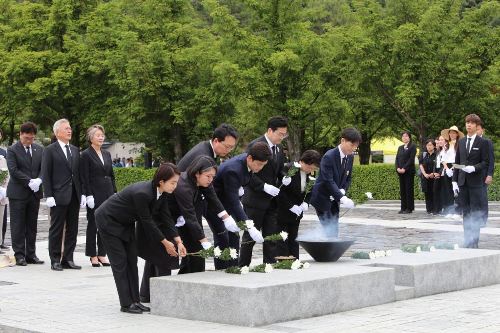 박찬대 더불어민주당 대표 권한대행, 김용태 국민의힘 비상대책위원장, 김선민 조국혁신당 대표 권한대행, 천하람 개혁신당 대표 권한대행, 김재연 진보당 상임대표, 용혜인 기본소득당 대표, 한창민 사회민주당 대표 등은 노 전 대통령 묘역 앞에서 나란히 참배했다.
