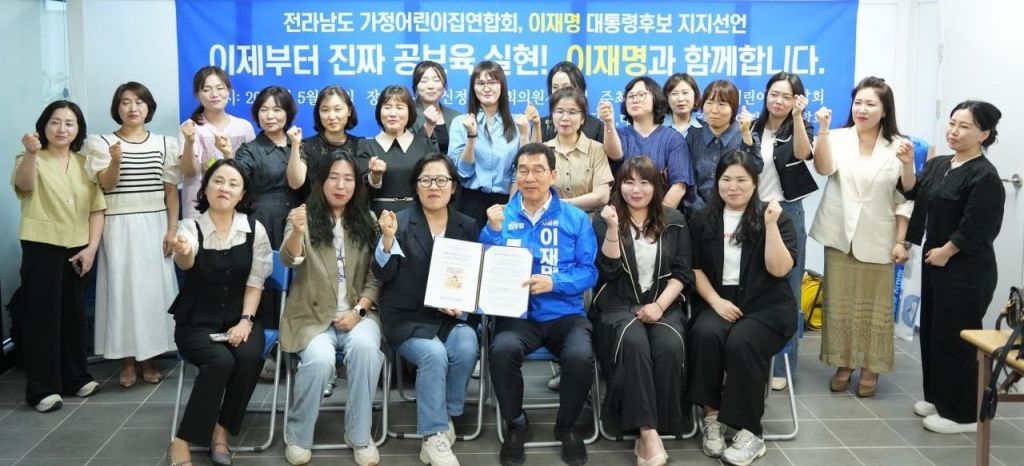 이번 지지 선언에는 전남 외에도 구미·대구·경남·광주지역 가정어린이집 연합회가 함께 참여했으며, 총 1,190개소 가정어린이집이 이재명 후보에 대한 지지를 공식적으로 밝혔다.