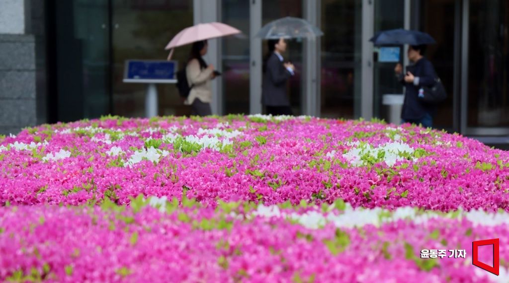 전국적으로 봄비가 내린 22일 서울 중구 세종대로를 지나는 시민들이 발걸음을 서두르고 있다. 2025.04.22 윤동주 기자