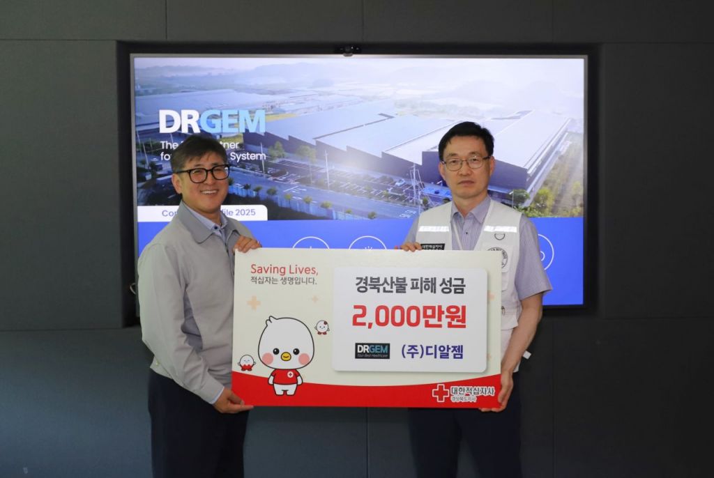㈜디알젬(대표 박정병)이 김천시 어모면 김천공장에서 경북 산불 피해 이재민 지원을 위해 대한적십자사 경북지사(회장 김재왕)에 2000만원을 기부했다고 25일 밝혔다.