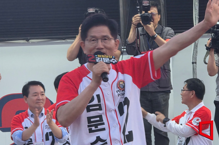 김 후보는 "독재를 막을 수 있는 것은 김문수가 아니라 여러분"이라며 "6월 3일에 똑바로 찍어야만 민주주의가 된다"라고 지지를 호소했다.