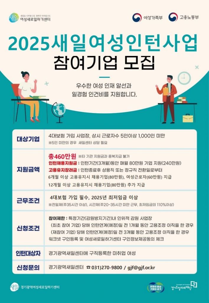 경기도일자리재단은 이번 사업을 통해 경력단절여성의 취업 기회를 넓히고, 기업과 인턴 참여자 모두에게 실질적인 혜택을 제공할 수 있을 것으로 기대하고 있다.