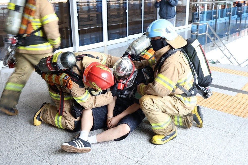 이번 훈련은 강풍에 의한 외부 구조물 충돌로 전차선 지지대가 파손되고, 열차 탈선과 화재로 이어지는 복합 재난상황을 설정해 진행됐다.