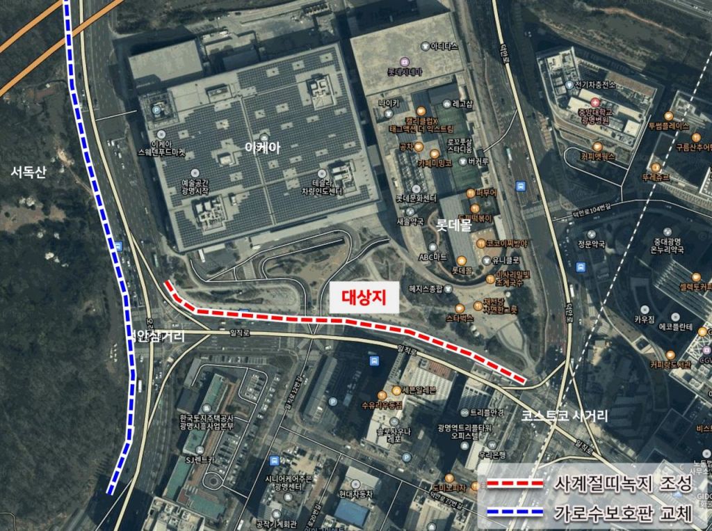 시는 일직로(덕안삼거리~롯데몰 광명점) 구간의 가로수 사이 공간에는 혼합 초화류와 사계절 식물을 심는 한편, 오리로 일원에는 노후한 가로수 보호틀 63개를 교체하고 가로수 하부에 맥문동을 심어 도로 경관과 보행환경을 개선할 계획이다.