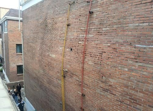수원시 등에서는 벽과 외벽 벽돌을 연결하는 철물의 노후화에 따른 강도 저하를 외벽 이상 현상의 원인으로 보고 있다.