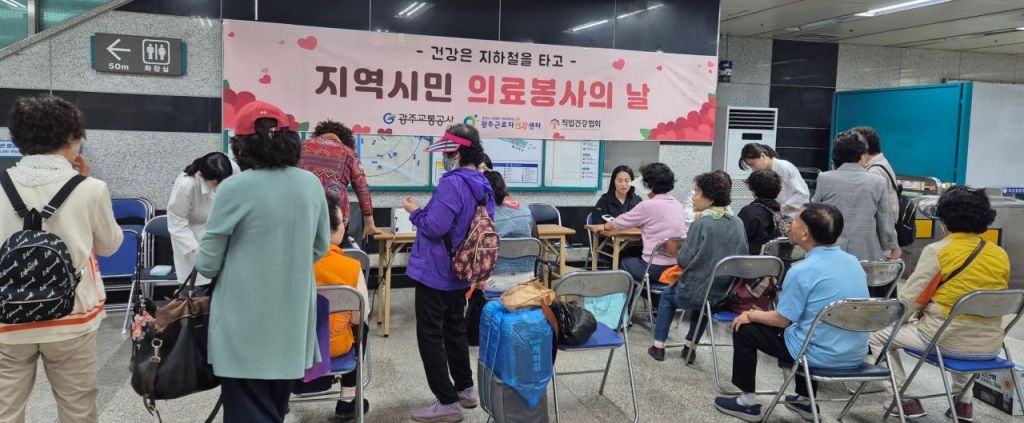 광주교통공사(사장 조익문)는 가정의달을 맞아 최근 서구 양동시장역에서 광주근로자건강센터와 함께 지역민을 위한 의료봉사 활동을 펼쳤다고 26일 밝혔다.