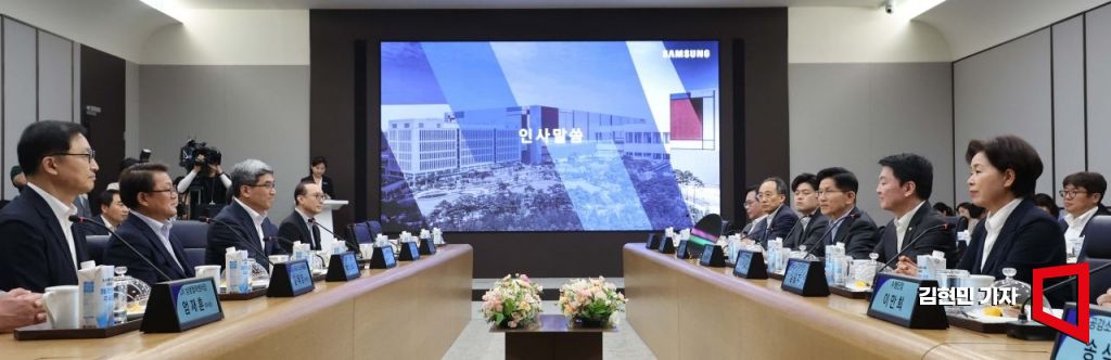 김문수 국민의힘 대선후보가 26일 경기 평택시 삼성전자 평택캠퍼스에서 열린 간담회에서 발언하고 있다. 이날 행사에는 송재혁 삼성전자 DS부문 최고기술책임자(CTO) 사장, 박승희 CR담당 사장, 김완표 삼성글로벌리서치 사장을 비롯해 김용태 국민의힘 비상대책위원장, 안철수·양향자 공동선대위원장 등이 참석했다.