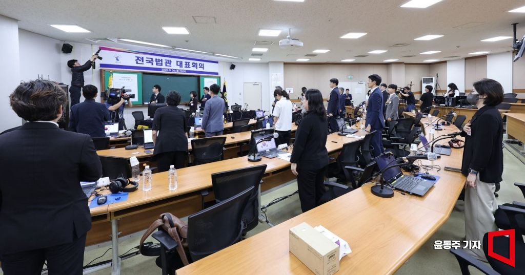 전국법관대표회의는 26일 오전 10시 경기 고양시 사법연수원에서 임시회의를 열고 2시간20분 동안 회의를 진행한 뒤 회의 속행을 결정했다. 법관대표회의 관계자는 "오늘 자 임시의회를 종결하고 회의를 속행하기로 했다"며 "속행될 회의에서 상정된 안건에 대해 토론하고 의결을 진행할 예정"이라고 했다.