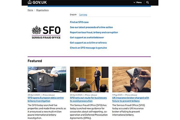 영국 중대비리수사청(Serious Fraud Office·SFO) 홈페이지