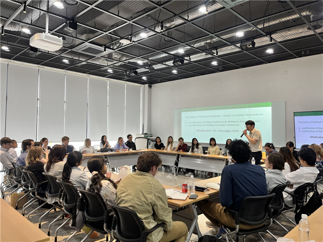 이어진 토론 세션에서는 '정치적 폭력의 윤리, 국가 폭력과 시민 저항'을 주제로, 전남대 재학생들과 UT 오스틴 학생들이 함께 열띤 논의를 이어갔다. 특히 전남대에서 '5·18 민주화운동과 세계적 투쟁' 강의를 수강 중인 학생들과 함께, 국가 폭력의 정당성, 계엄군의 책임, 시민의 무장 저항에 대한 윤리적 평가 등을 깊이 있게 다뤘다.