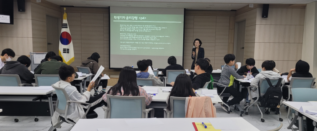 이날 행사는 ▲학생기자단 윤리강령과 실천 요강 ▲기사 작성 기초 이론 수업 ▲취재 기사 기획·기사 작성 요령 등 다채로운 프로그램으로 진행됐다.