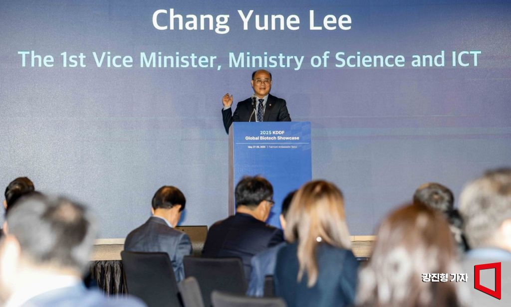 이창윤 과학기술정보통신부 제1차관이 27일 서울 여의도 페어몬트 호텔에서 열린 'KDDF 글로벌 바이오텍 쇼케이스 개회식'에 참석해 축사 하고 있다.