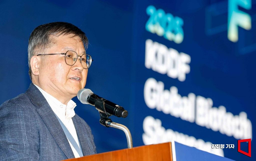 박영민 국가신약개발재단 단장이 27일 서울 여의도 페어몬트 호텔에서 열린 'KDDF 글로벌 바이오텍 쇼케이스 개회식'에 참석해 개회사 하고 있다.