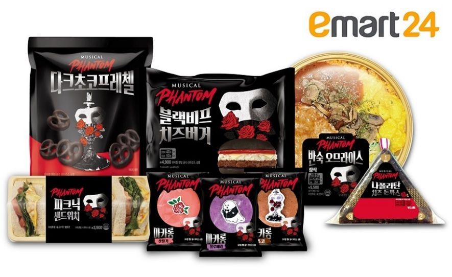 EMK뮤지컬컴퍼니 측은 뮤지컬의 감동을 일상에서도 특별하게 경험할 수 있는 기회를 제공하기 위해 협업 상품을 마련했다고 밝혔다. 팬텀의 공간적 배경이 되는 프랑스의 디저트 마카롱을 비롯해 블랙비프버거, 오므라이스, 피크닉샌드위치 등을 이날부터 이마트24 편의점에서 구매할 수 있다.